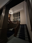 This scheme uses the CorDuo Mac II low-voltage cable system to illuminate each stained-glass panel with sensitivity and precision. Each recess carries a horizontal twin-wire span supporting four miniature adjustable spot heads, scaled to remain visually discreet while allowing accurate beam control. Warm-white LED lamps gently reveal the depth, colour and leadwork of the historic glass, enhancing pattern and texture without overwhelming the stairwell or causing glare. Fixings are intentionally minimal and installed through mortar joints to protect the original fabric of the building. A single transformer provides safe 12V operation, delivering low heat output, high reliability and efficient performance. The result is a refined, heritage-appropriate lighting solution that celebrates this important architectural feature with elegance and restraint.