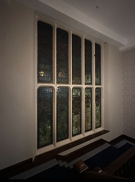 A discreet twin-wire lighting system installed within each stained-glass recess, using four compact warm-white spot heads to wash light gently across the glass. The scheme enhances colour, texture and heritage detail while keeping all fittings slim, minimal and visually unobtrusive.